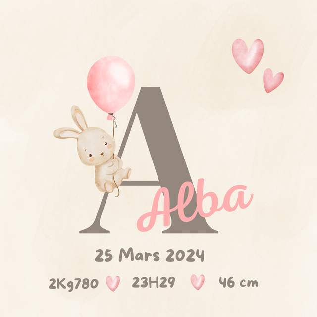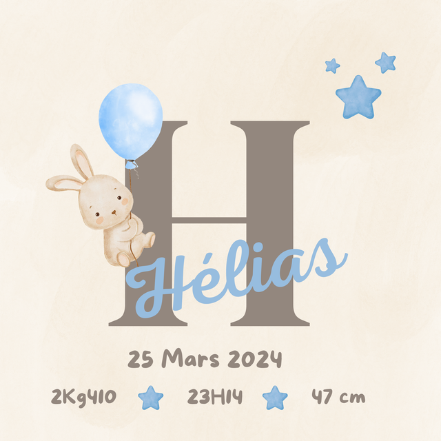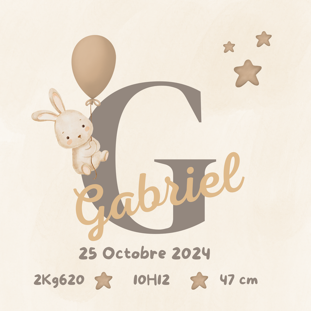 • Personnalisation : Grande initiale, prénom, date, heure, poids et taille du bébé